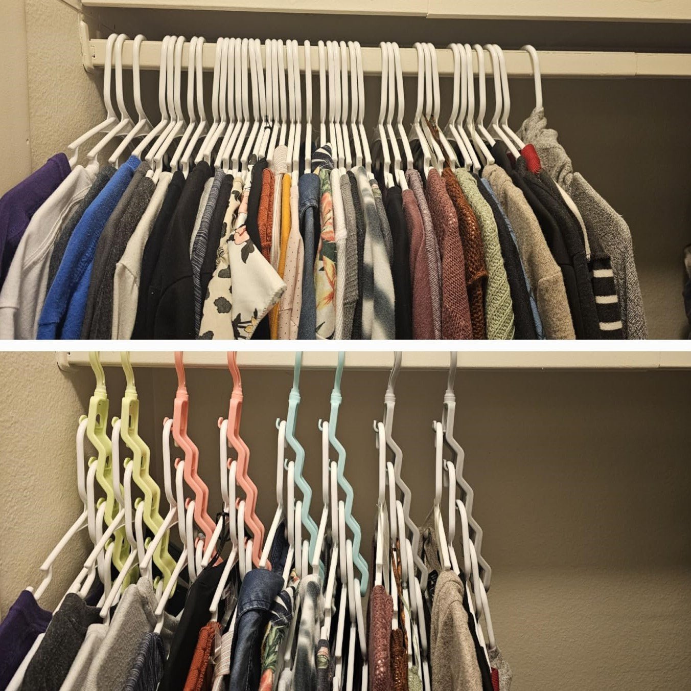 Perfect for anyone with limited storage or looking to minimize clutter, these hangers adjust to hold everything from shirts to dresses, making them an essential for any closet.